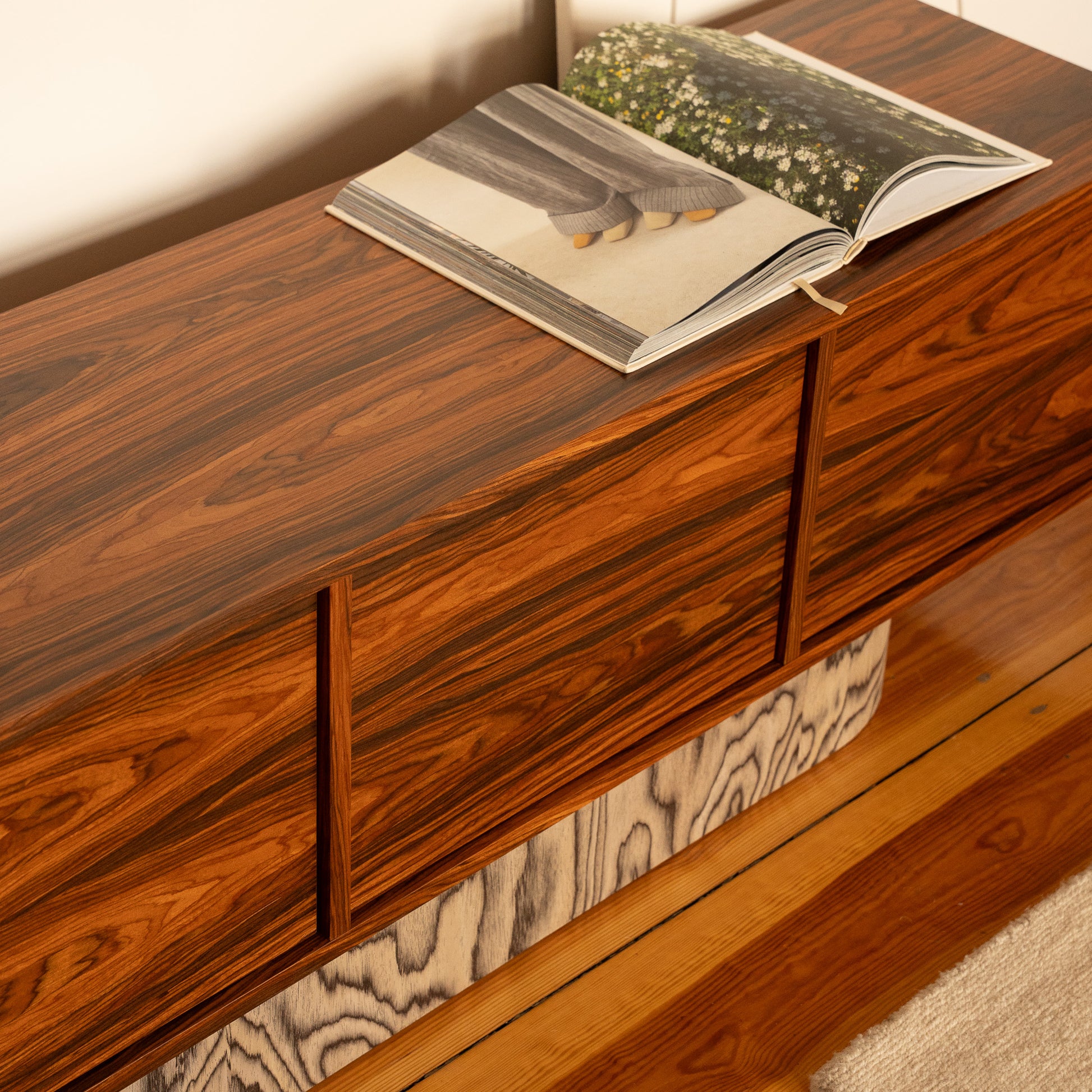 Het minimalistische silhouet wordt verrijkt door het karaktervolle fineer, waardoor IRI zowel een statement piece als een praktische opbergoplossing is. In de woonkamer, eetkamer of werkkamer – het brengt rust, stevigheid en ambachtelijke verfijning in elke ruimte.