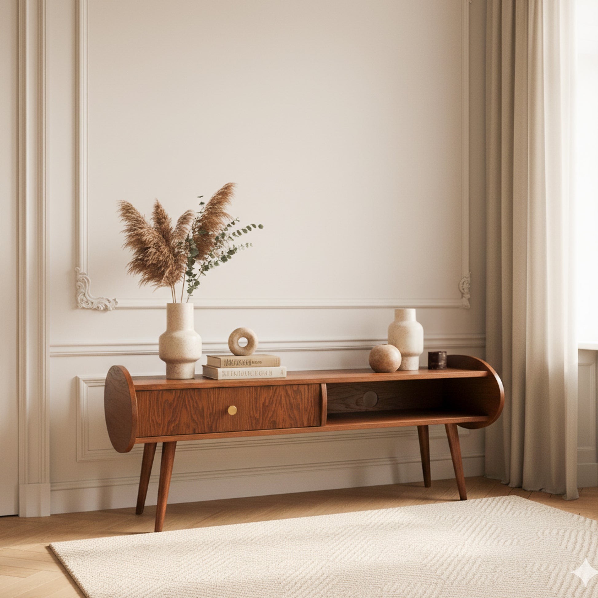 Ontdek het BONAM tv-meubel – een meubelstuk dat met klassieke lijnen en verfijnde vintage details de sfeer van het verleden combineert met een moderne toets. BONAM is een meubelstuk dat functionaliteit verenigt met uitgesproken design – ideaal als tv-meubel, maar ook prachtig als laag middelpunt van je woonkamer. BONAM brengt energie, lichtheid en een vleugje durf in je interieur.